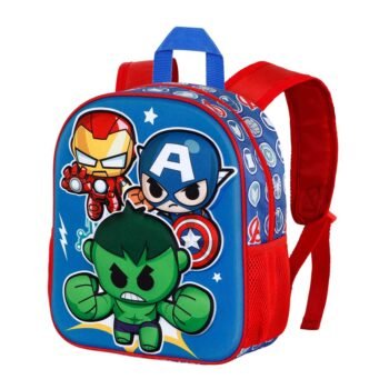 Mochila preescolar con relieve frontal 3D. Compartimento principal con cremallera y forro interior. Dos bolsillos laterales de malla.