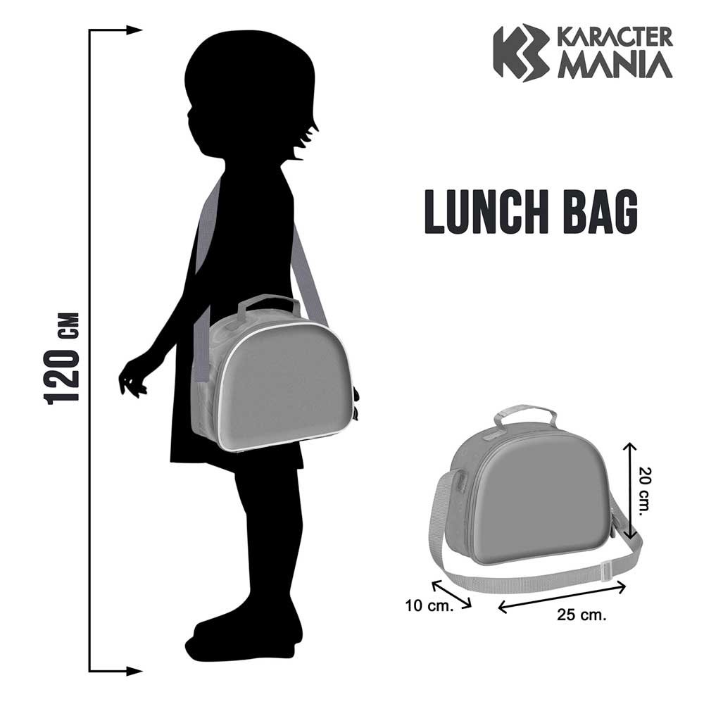 Merendero de un solo compartimento con forro isotérmico para conservar los alimentos a temperatura óptima. Cierre de cremallera, asa superior y bandolera ajustable de 55-110 cm de longitud. Diseño con relieve frontal. Cinta trasera para transporte en carrito.