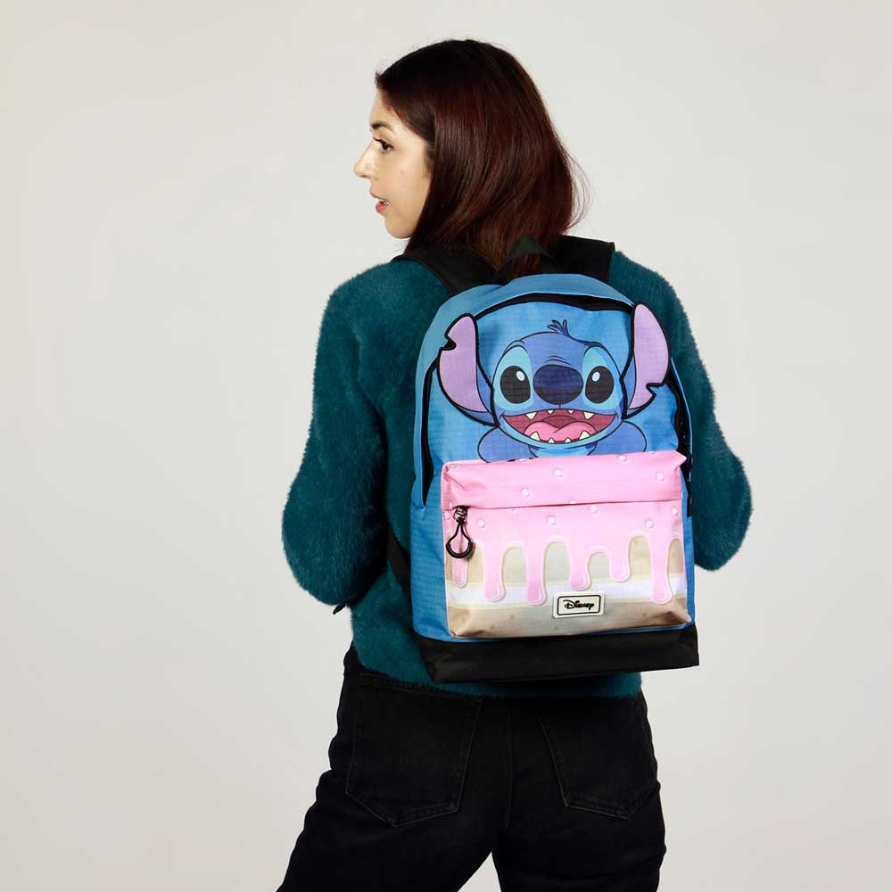 Mochila urbana pequeña con compartimento único cerrado con cremallera. Frontal con la silueta del personaje. Tiene asas traseras ajustables y forro interior.