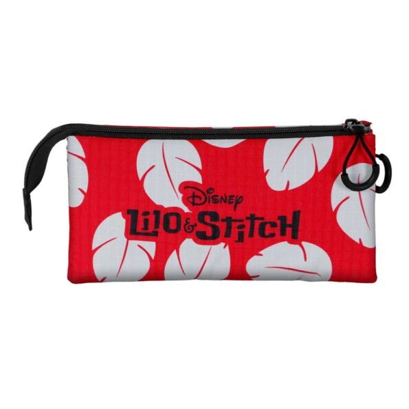 Estuche portatodo rectangular con tres compartimentos para tus pertenencias. Los dos bolsillos exteriores se abren con la cremallera principal y el tercero con una propia.
