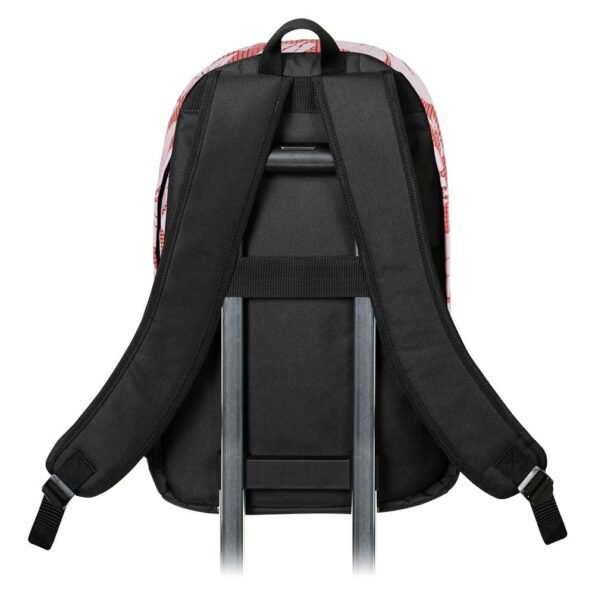 Mochila urbana con trasera acolchada y transpirable, adaptable a carro. Divisor interno acolchado para dispositivos electrónicos. Puerto USB para cargar el móvil mediante power bank (no incluida).