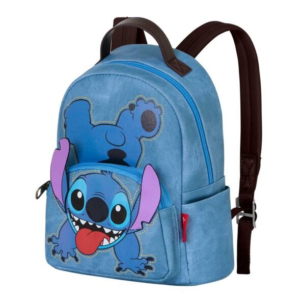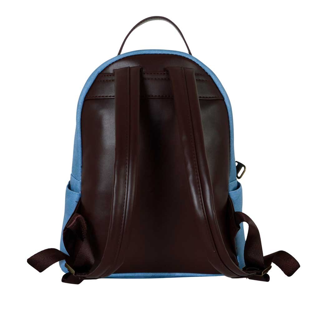 Mochila urbana con compartimento principal y bolsillo delantero de cremallera. Dos bolsillos laterales abiertos y forro interior.