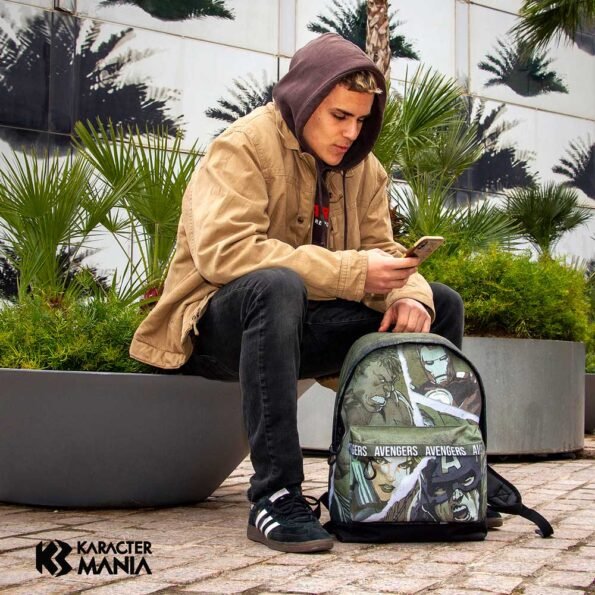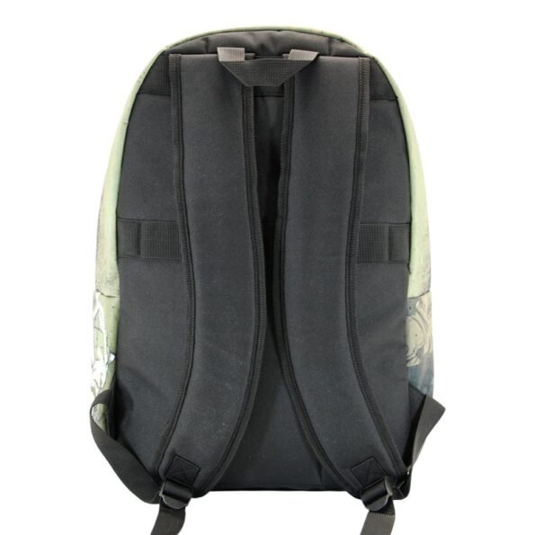 Mochila urbana pequeña con compartimento único cerrado con cremallera. Frontal con la silueta del personaje. Tiene asas traseras ajustables y forro interior.