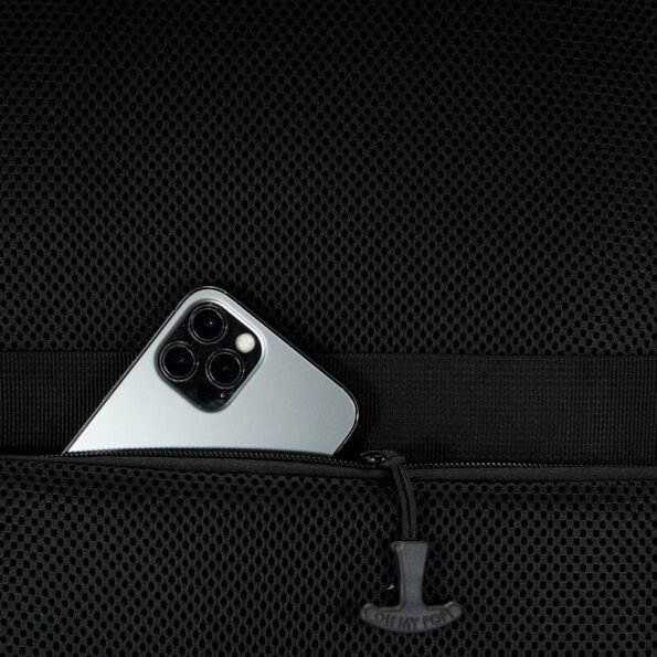 Mochila urbana con trasera acolchada y transpirable, adaptable a carro. Divisor interno acolchado para dispositivos electrónicos. Puerto USB para cargar el móvil mediante power bank (no incluida).