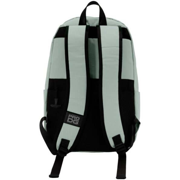 Mochila urbana de un compartimento, fabricada con material reciclado de alta resistencia (RPET). Cuerpo exterior repelente a líquidos con bolsillo frontal y bolsillo lateral en malla. Forro interior con bolsillo acolchado para dispositivos electrónicos. Correas al hombro reforzadas y cinta trasera para trolley.